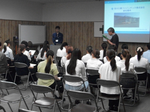 2025年8月20日、大学コンソーシアム関門(北九州市・下関市にある大学が 相互に連携・協力する機関)より、2025年度授業「北九州・下関知育の魅力ある 企業団体を学ぶ」の一環として大学生23名を含む27名が来社されました。 まず、当社の沿革や製造している製品について説明を行い、 続いて当社の製品がどのように製造されるかを実際に見学して頂きました。 工場見学の後の質疑応答では、学生と当社社員を交えて活発な意見交換を 行いました。