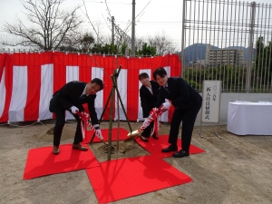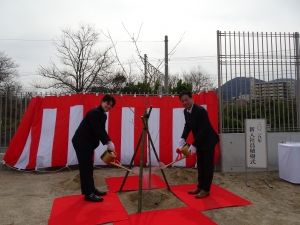 入社式後、新入社員の手により桜(ソメイヨシノ)の植樹式を実施しました。